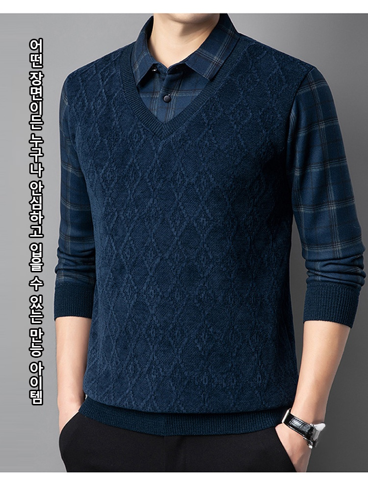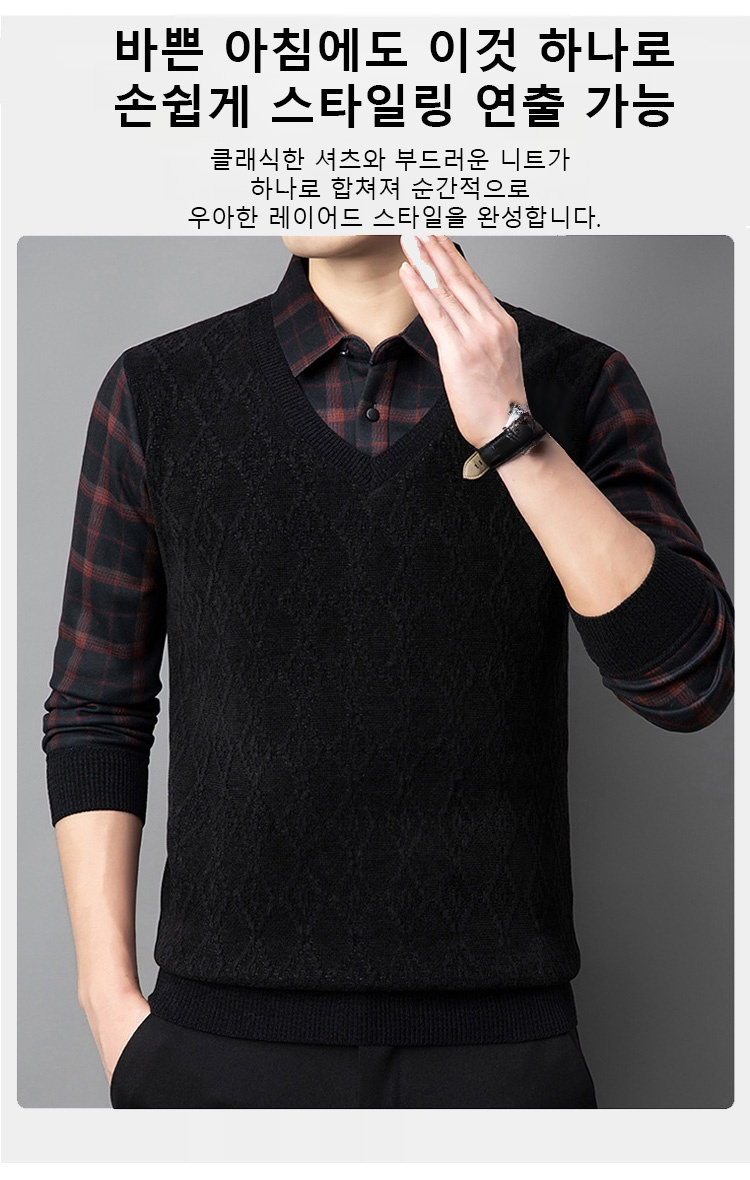 기모 도톰 페이크 레이어드 니트 스웨터