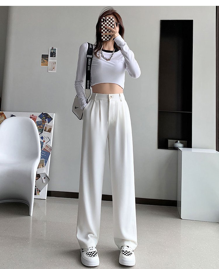 하이웨이스트 드레이프 일자핏 와이드 팬츠